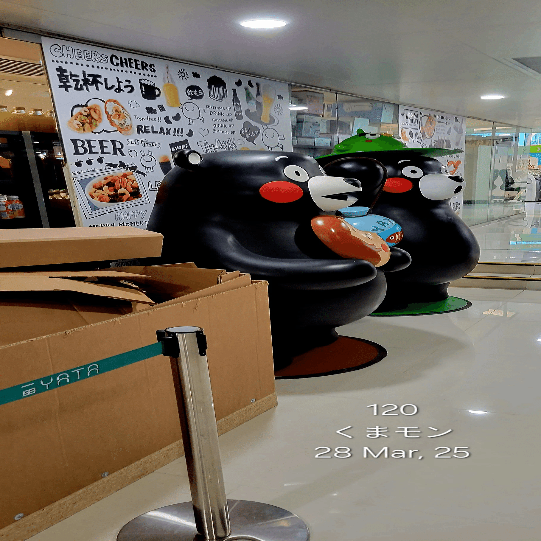 写真をご覧ください。手前には無造作に積まれた段ボール。少し雑多な場所に追いやられながらも、変わらぬ笑顔でそこに佇む姿には、中間管理職のような哀愁すら漂います。 香港の湿気や熱気に耐え、時には埃をかぶりながらも、健気にその場を守る営業部長。そんな姿を見ると、思わず「お疲れさまです!」と声をかけ、頭をなでてあげたくなりますね😊